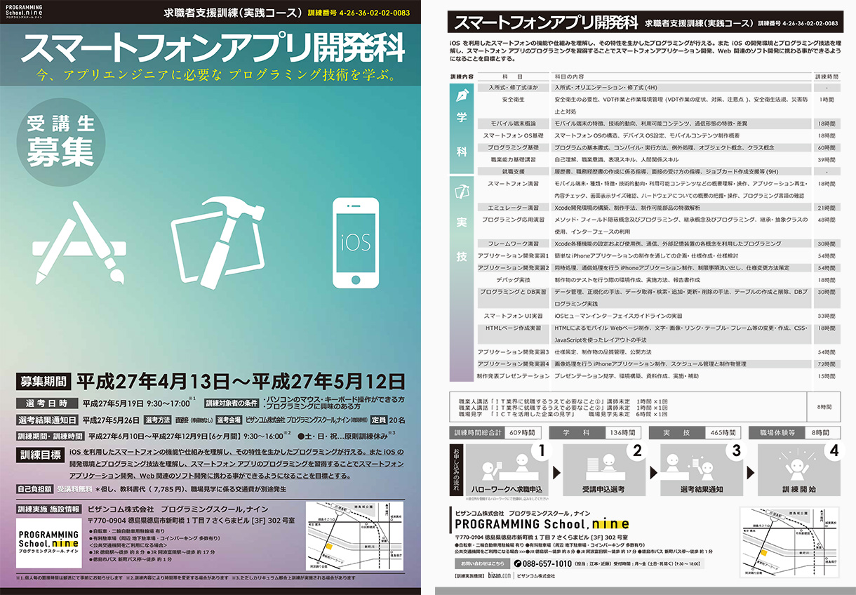 求職者支援訓練コース「スマートフォンアプリ開発科」4期生の募集が開始されました。