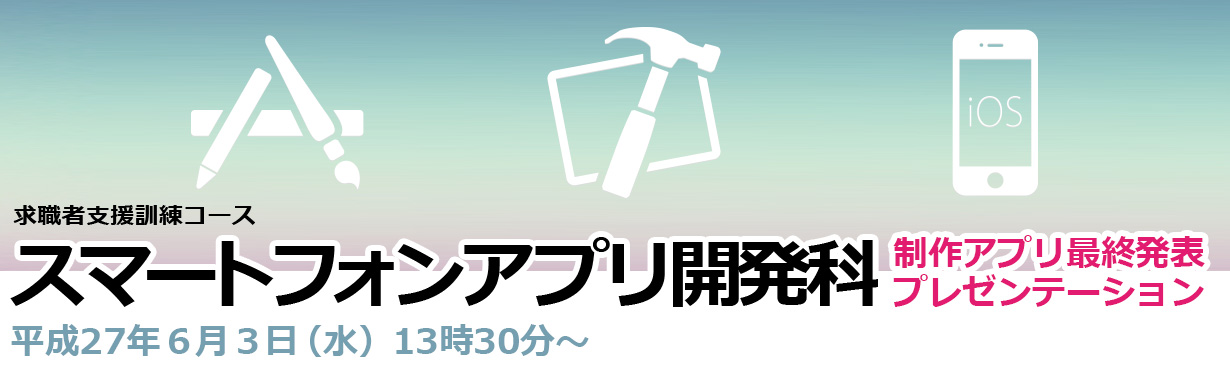 昨年の12月に開講した「スマートフォンアプリ開発科第3期」がこの6月3日を持ちまして修了を迎えます。 それに伴って、6ヶ月間の訓練の成果を披露する「最終プレゼンテーション」を行います。