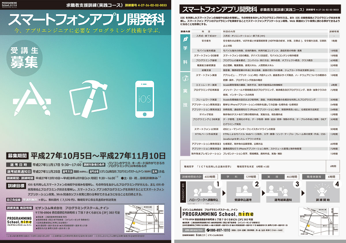 求職者支援訓練コース「スマートフォンアプリ開発科」5期生の募集が開始されました。