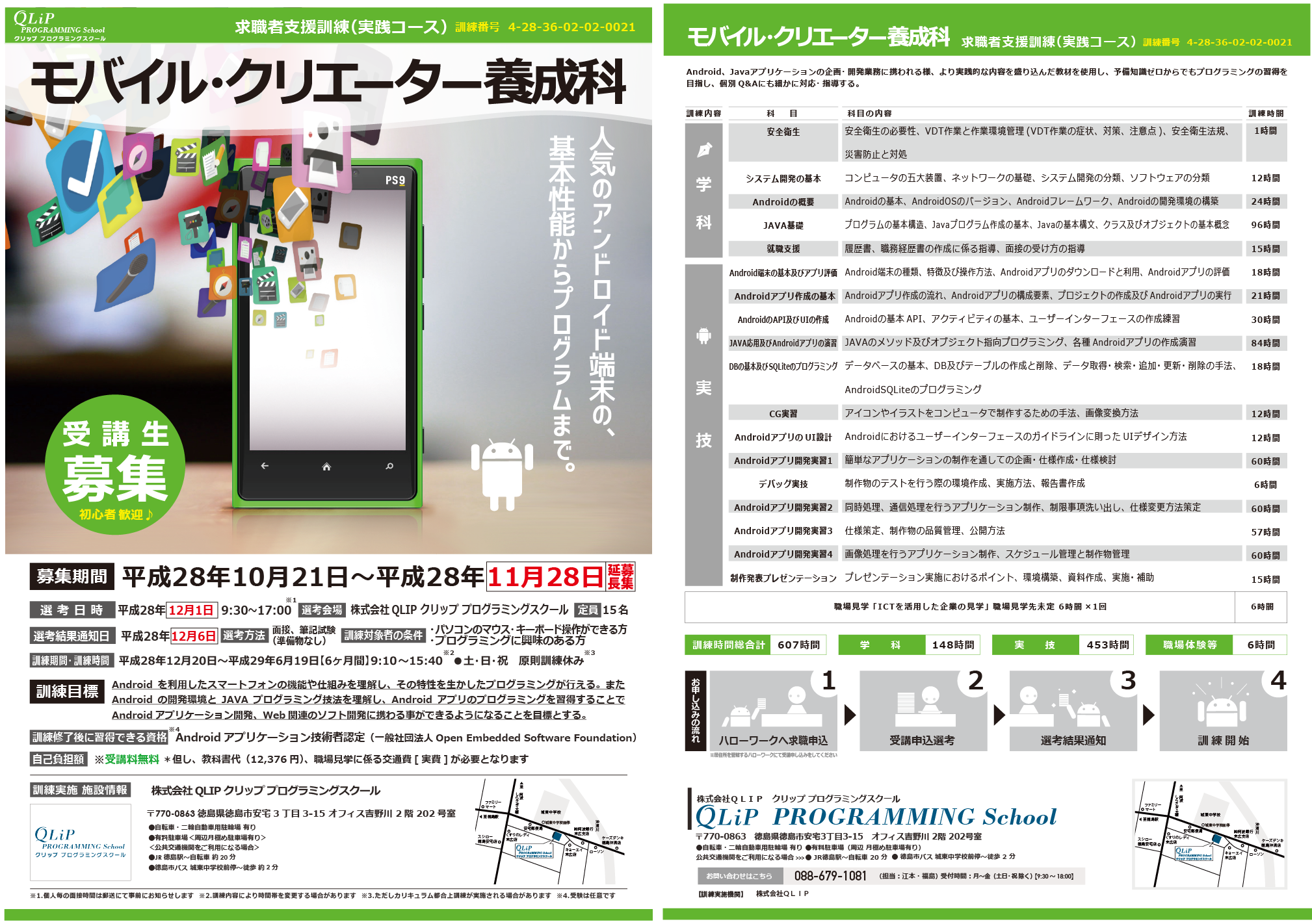 求職者支援訓練コース「モバイル・クリエーター養成科」12期生の募集が開始されました。